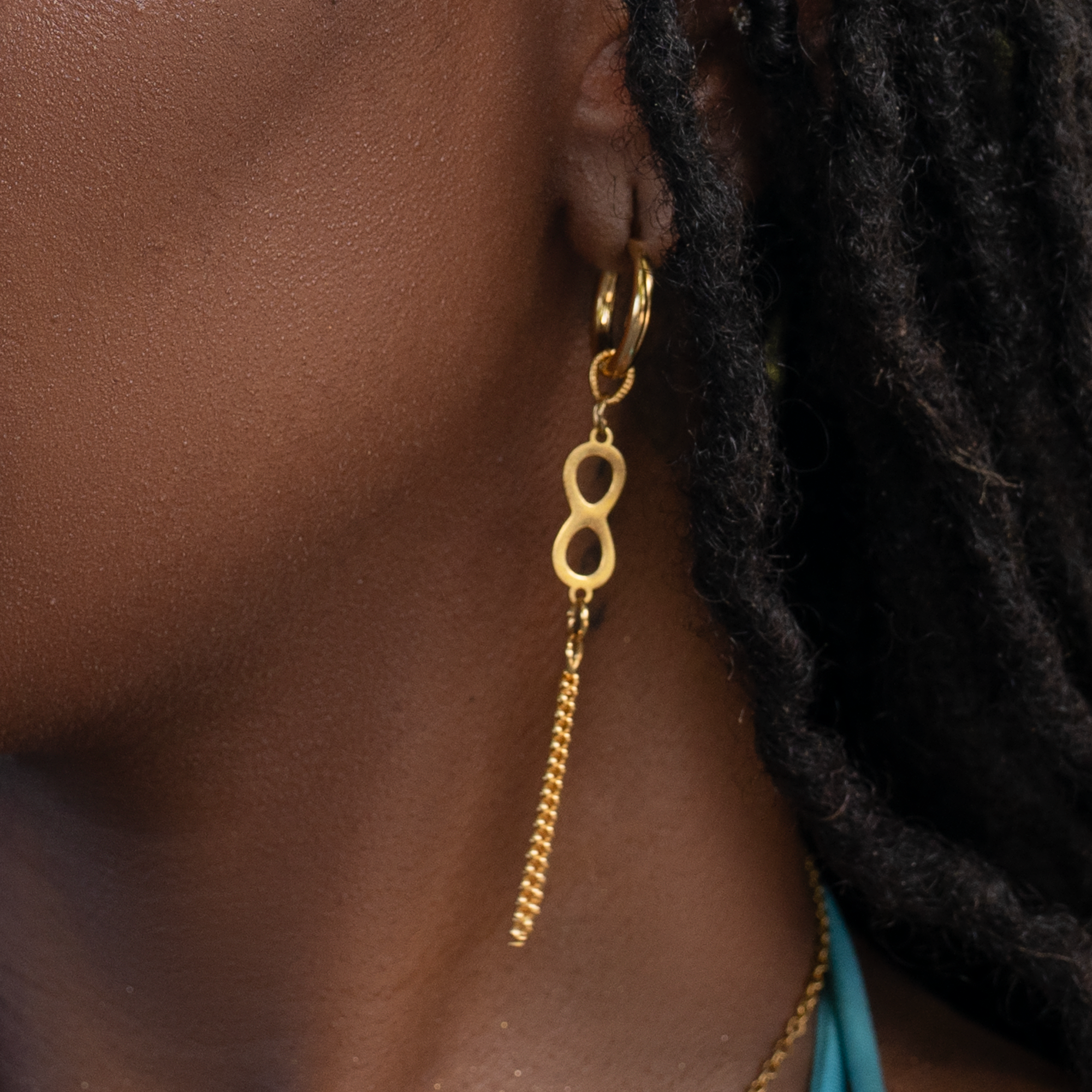 Des boucles d’oreilles en acier inoxydable doré, qui reflètent la beauté du mouvement infini.