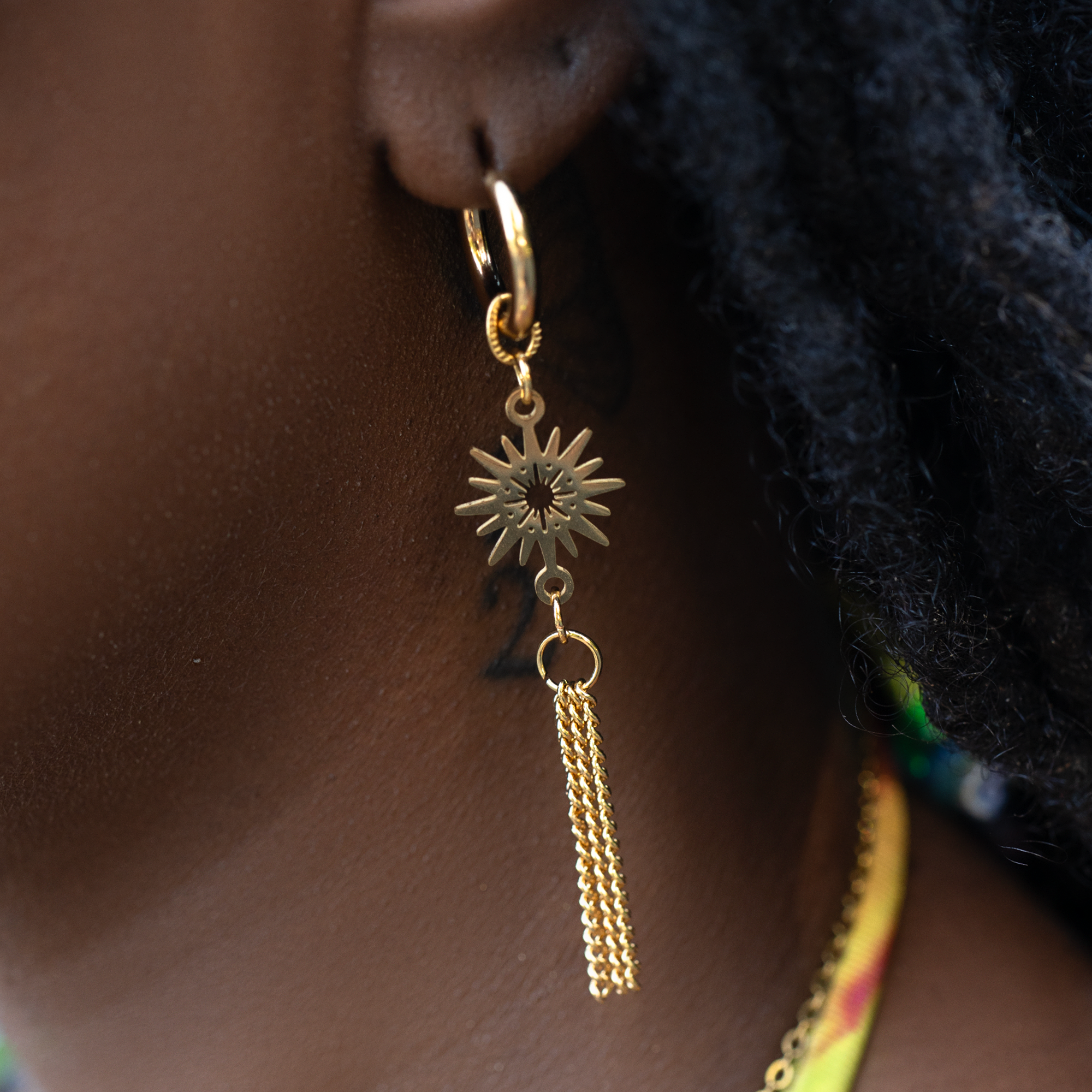 Des boucles d’oreilles en acier inoxydable doré, qui incarnent la féminité solaire.